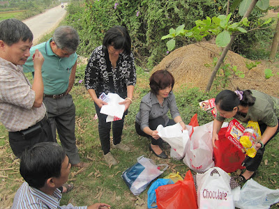 | Hội TTST BND tạm dừng bên con đường Nguyễn Văn Trỗi, để sắp xếp các quà tặng, trước khi về thăm nhà thờ họ Phùng ở xã Thống Nhất 2/2010 (giờ là Hữu Văn). Con đường nối từ Chúc Sơn, qua Tốt Động, Hữu Văn và thẳng tới sân bay Miếu Môn, nơi gặp đường Hồ Chí Minh |